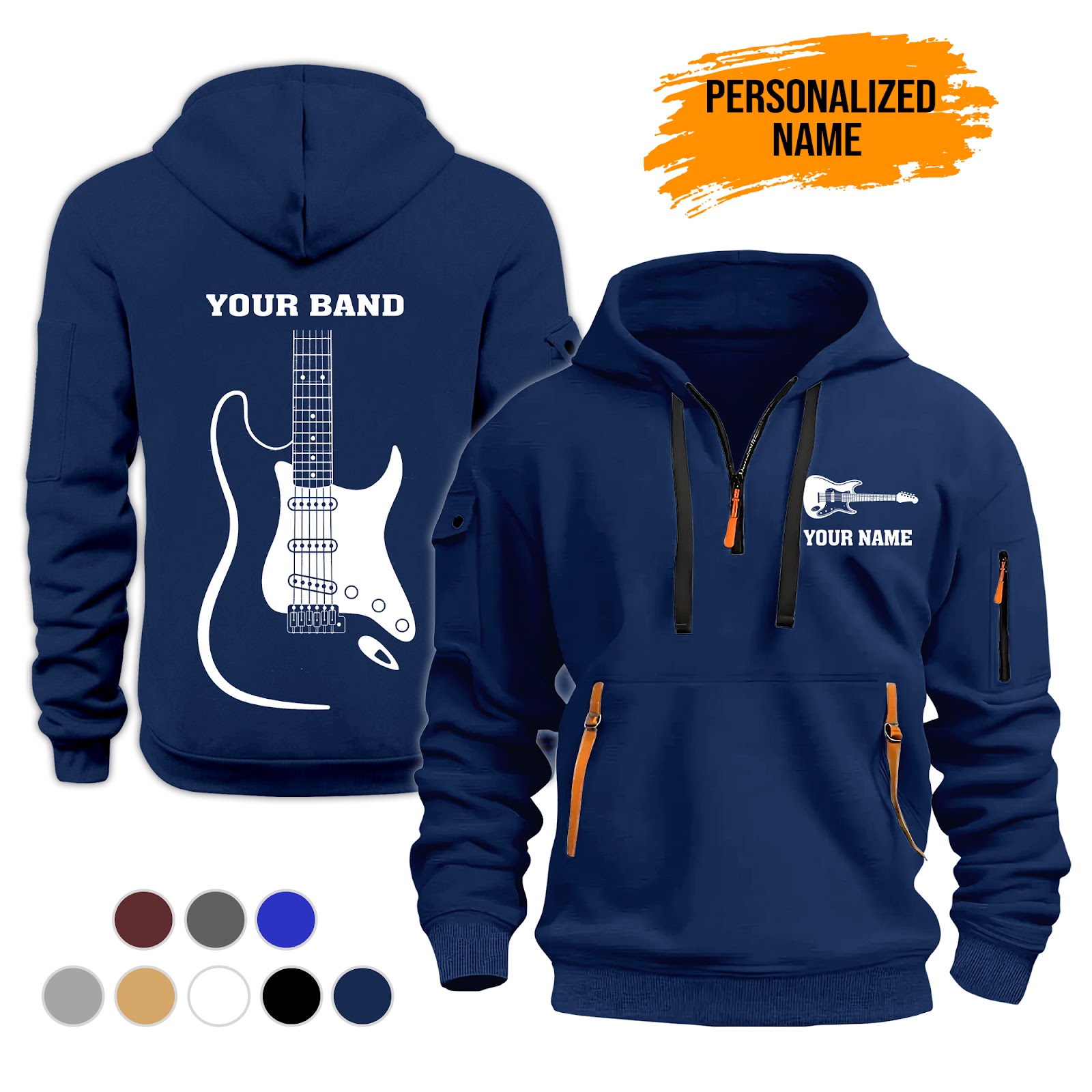 Personalized Name Electric Guitar 3D Quarter Zip Hoodie GL17
