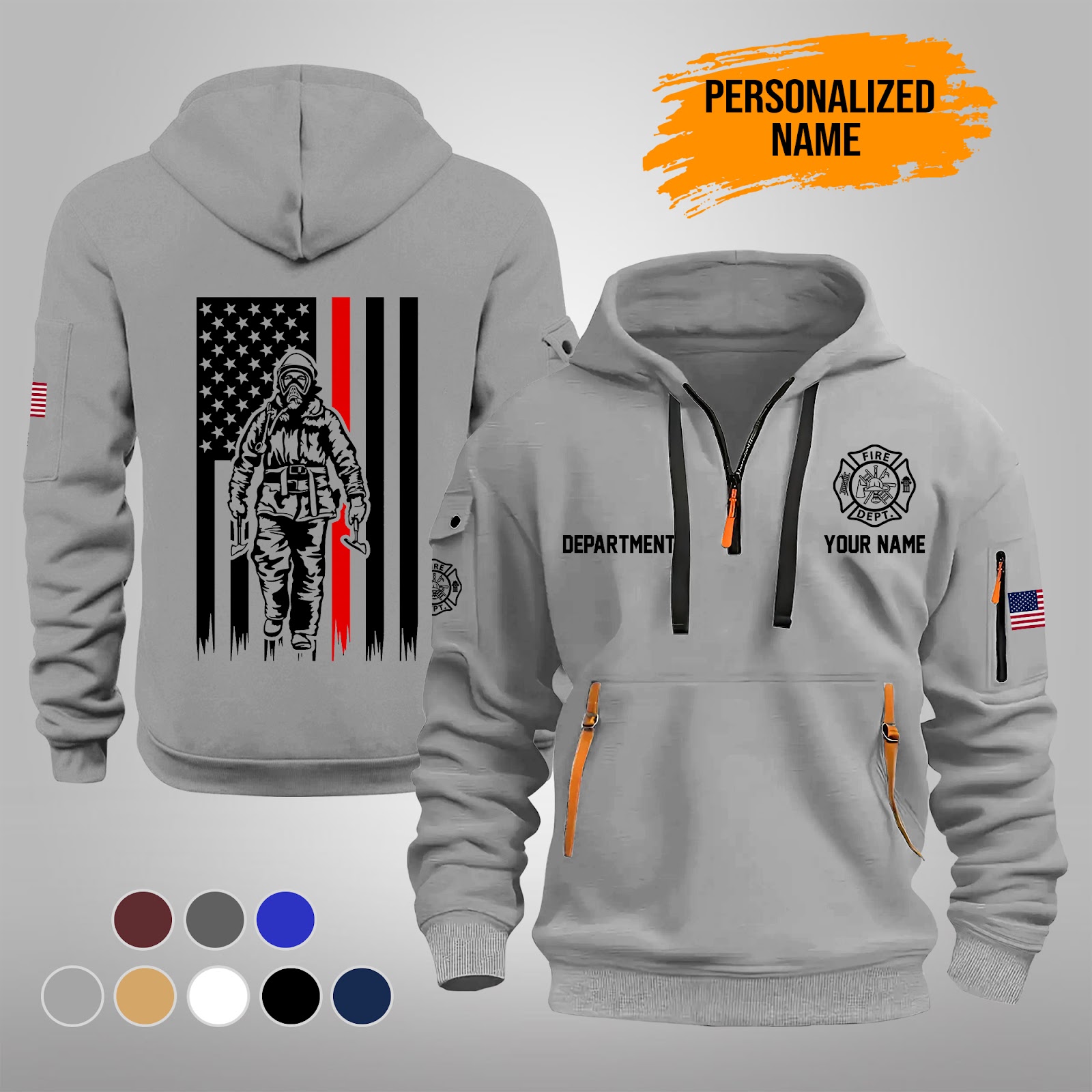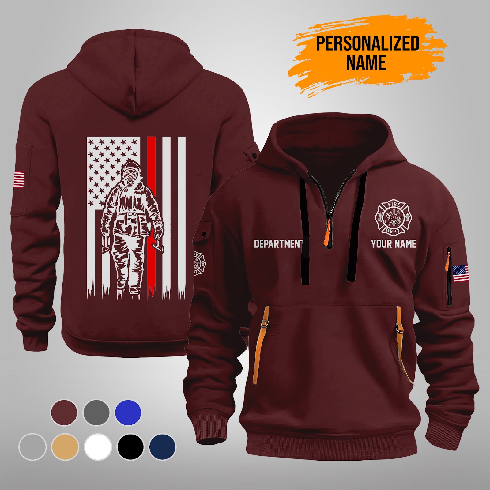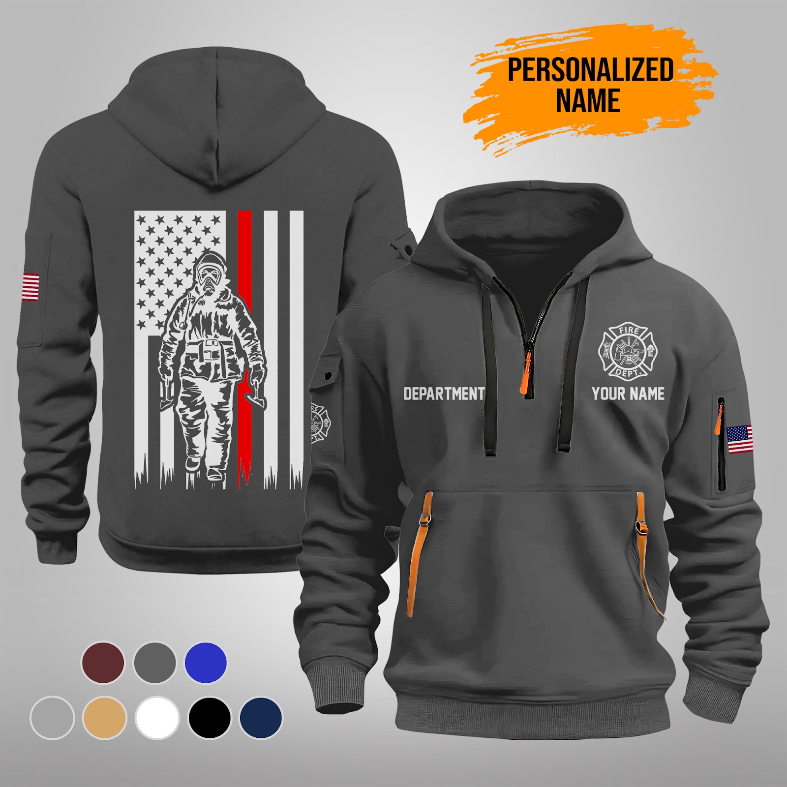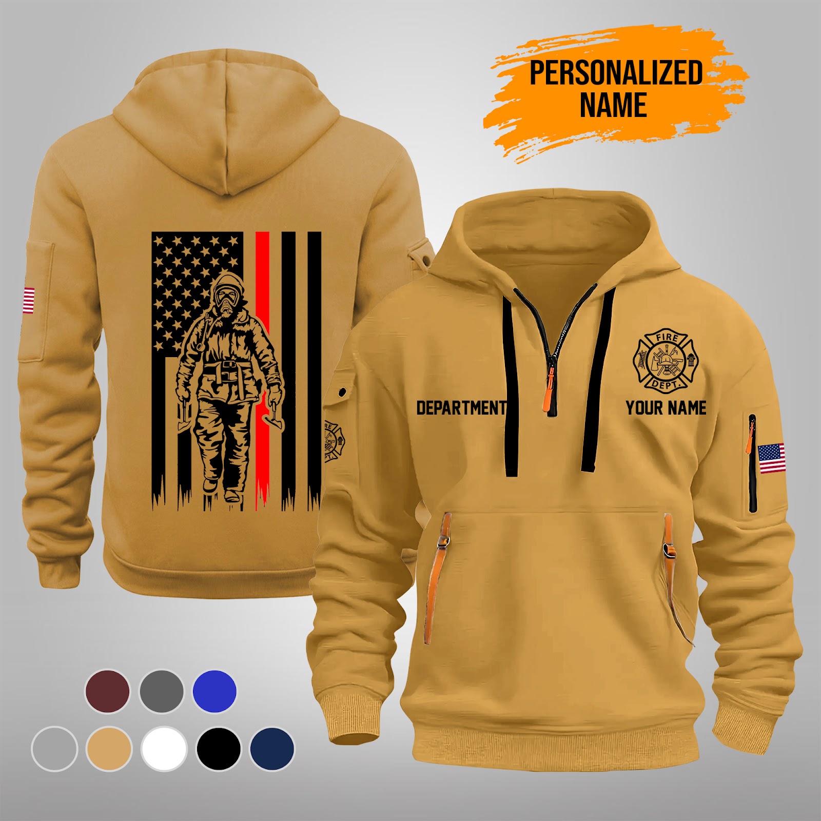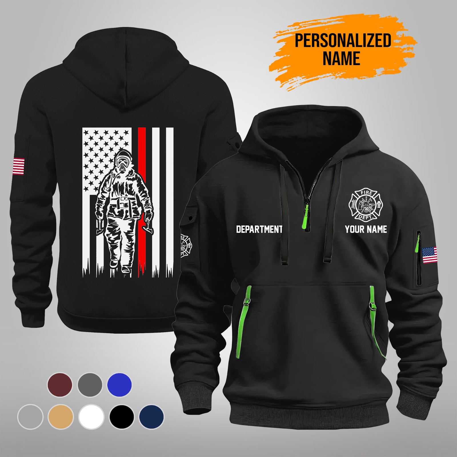 Personalized Name Love Firefighter Quarter Zip Hoodie PU262