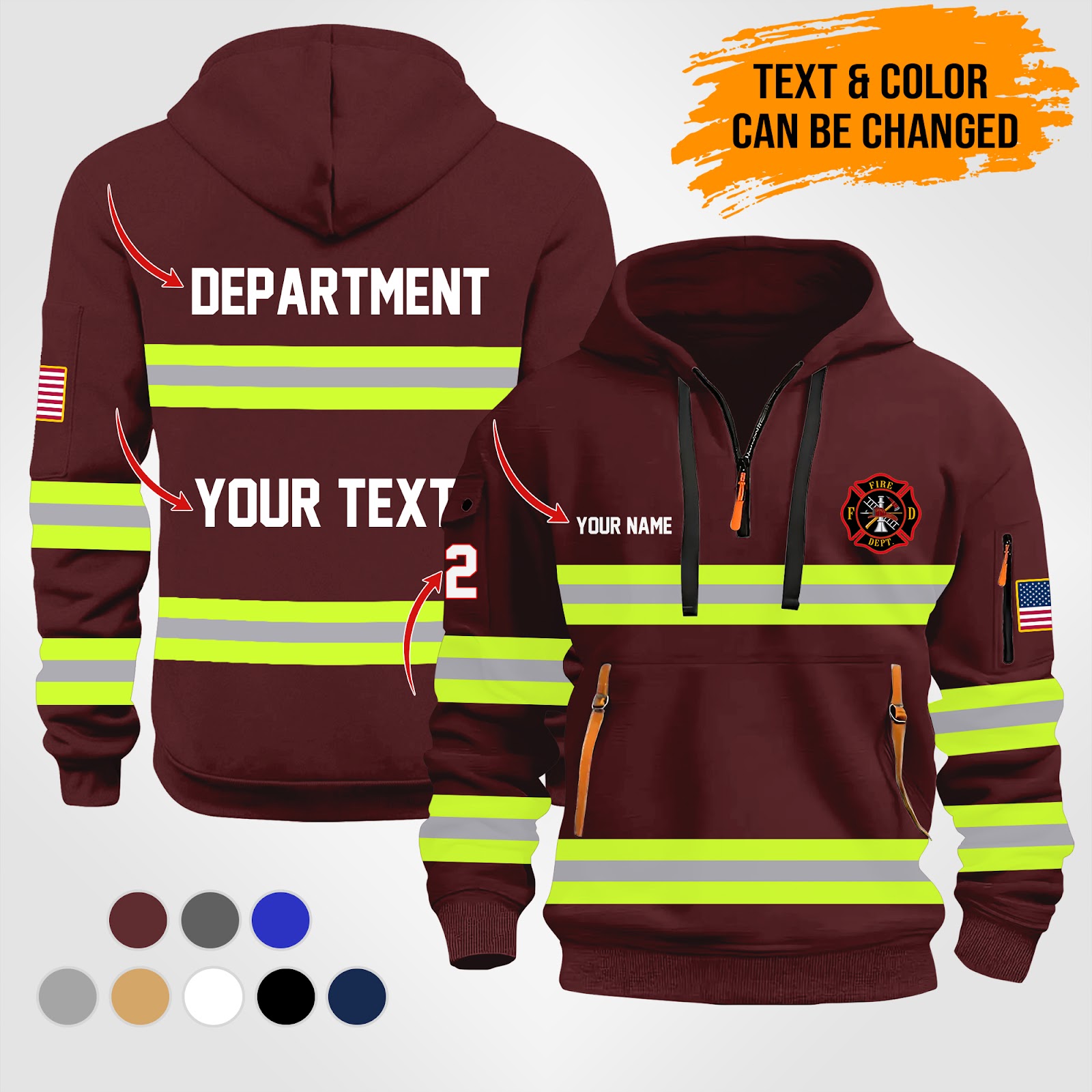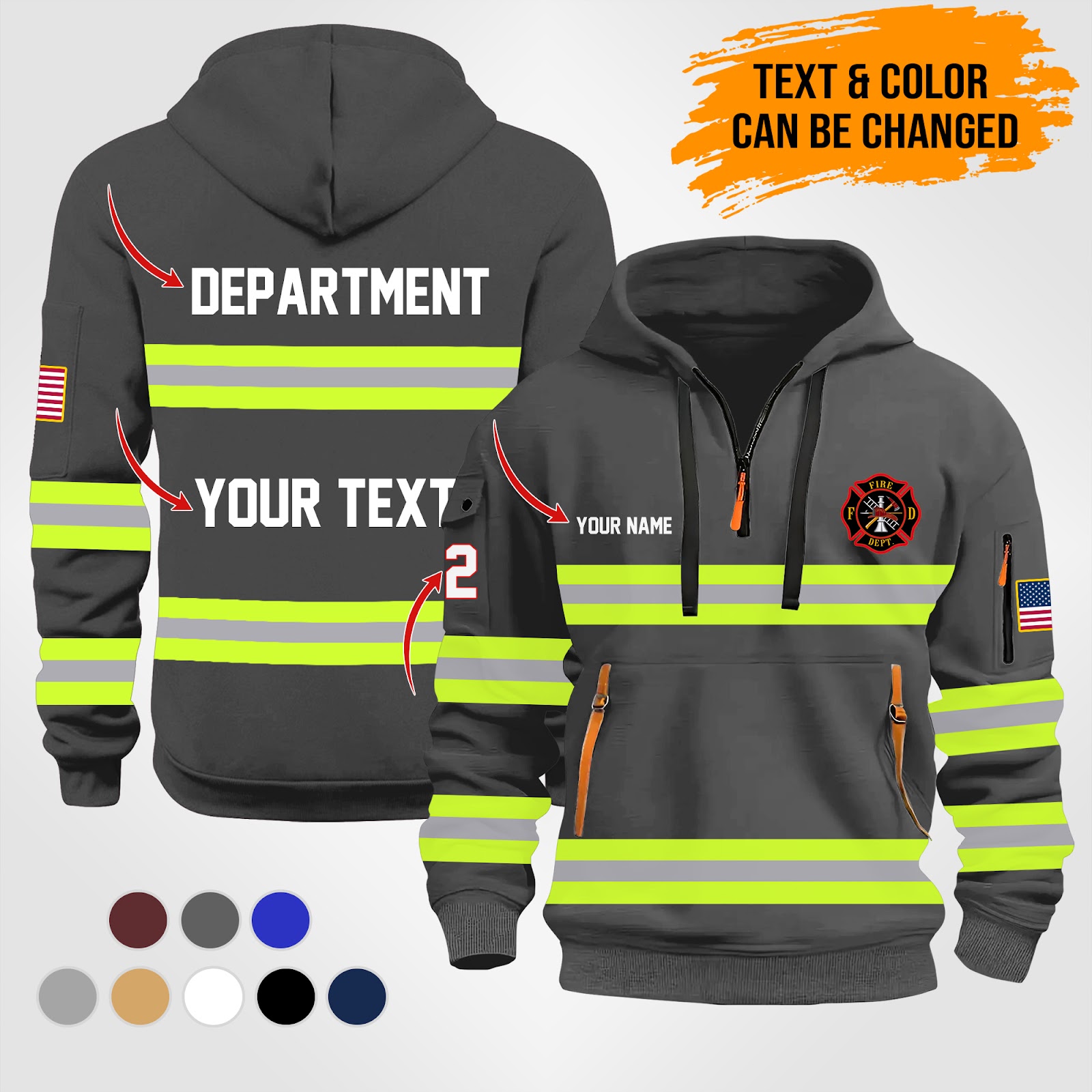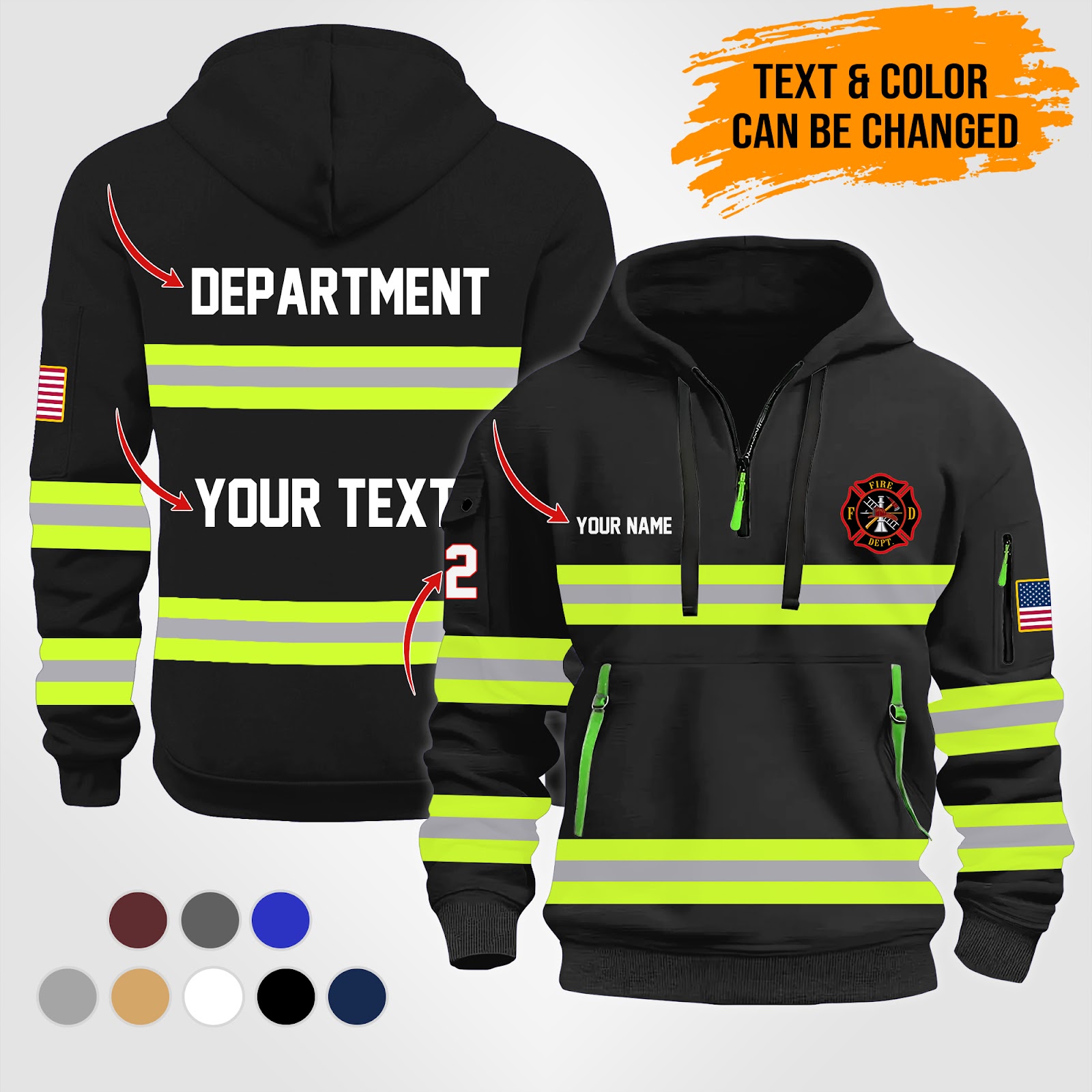 Personalized Name Love Firefighter Skull Quarter Zip Hoodie PU247