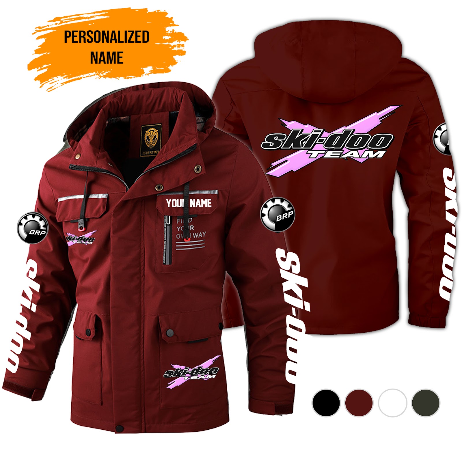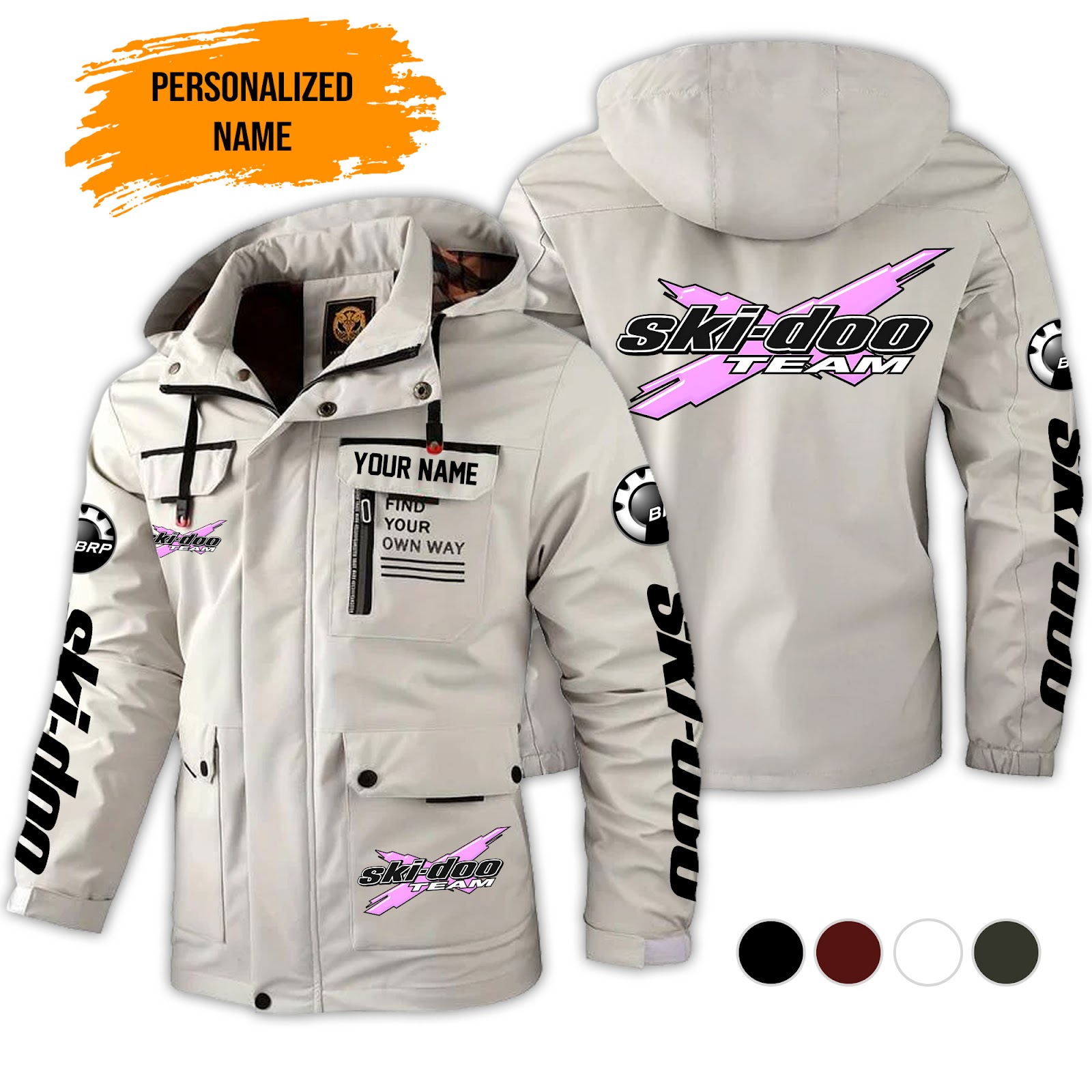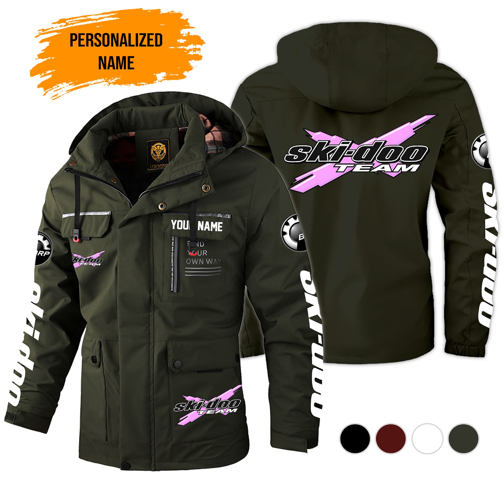 Personalized Name Love Ski Snowmobile 2D Printed Waterproof Outdoor Jacket Detachable Hood KS696 | Your Name Shannon